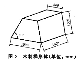 將單組斜管按其在沉淀池內(nèi)的放置方式于水平地面上,用木制梯形體的腰面(見圖2)支撐斜管的傾斜面。在單組斜管的上管口平面上平放一塊木板,木板長1000mm,寬500mm,厚40mm,木板兩面平整。在木板上均勻施加重物,重物和木板質(zhì)量之和為70kg。承荷載10min后,卸去荷載,用目測方法檢查脫焊、開裂或脫膠情況。